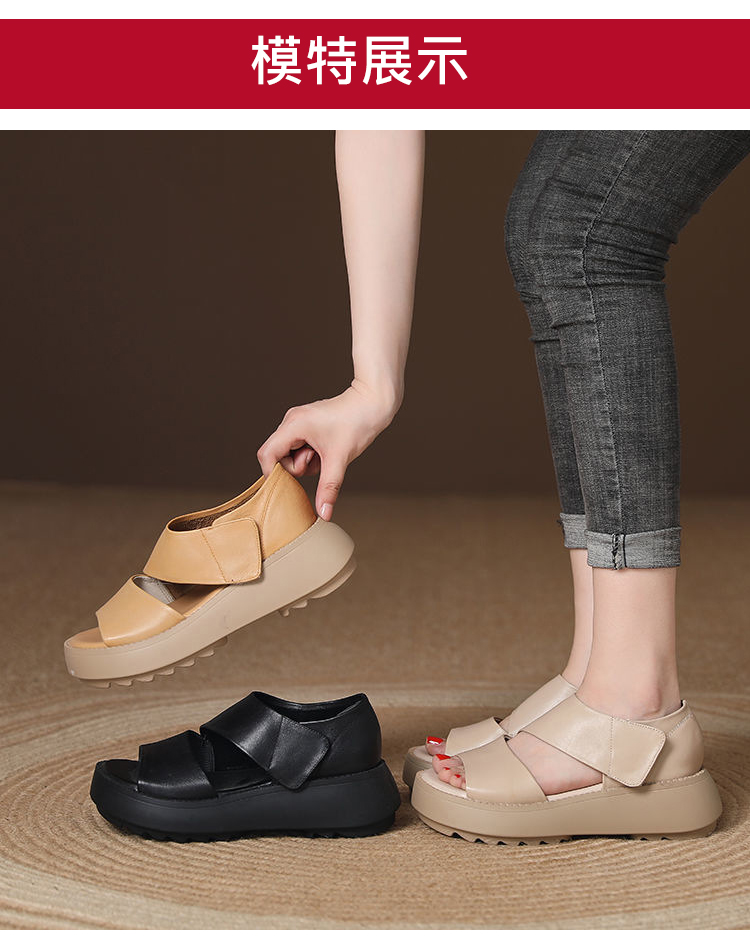復古羅馬魔術貼涼鞋