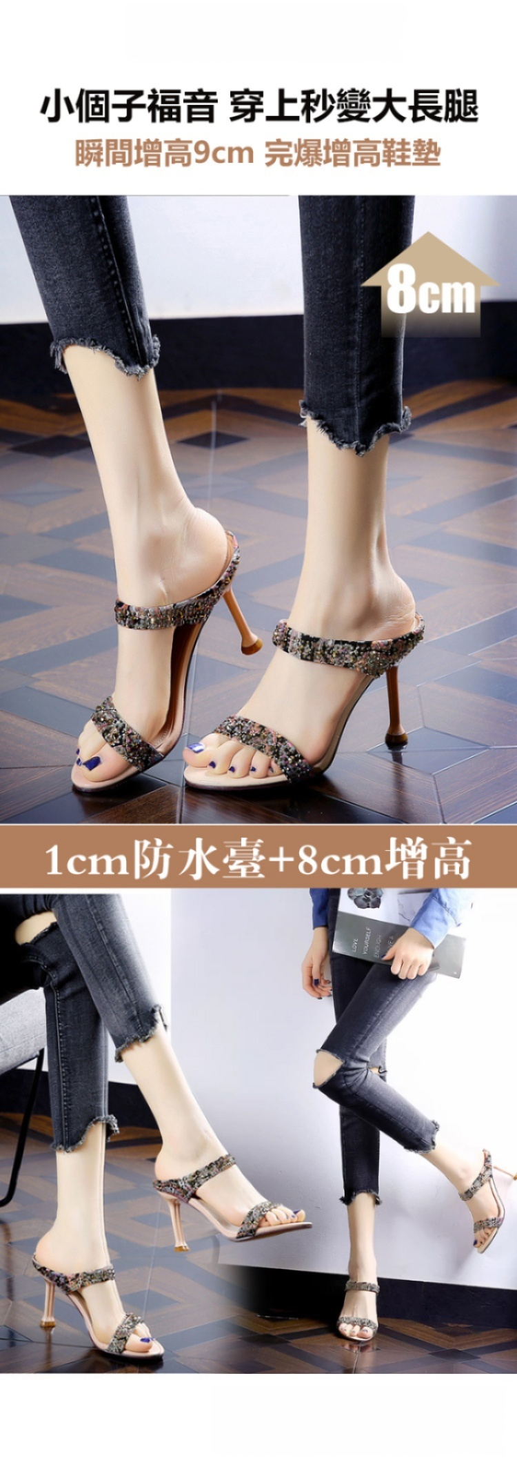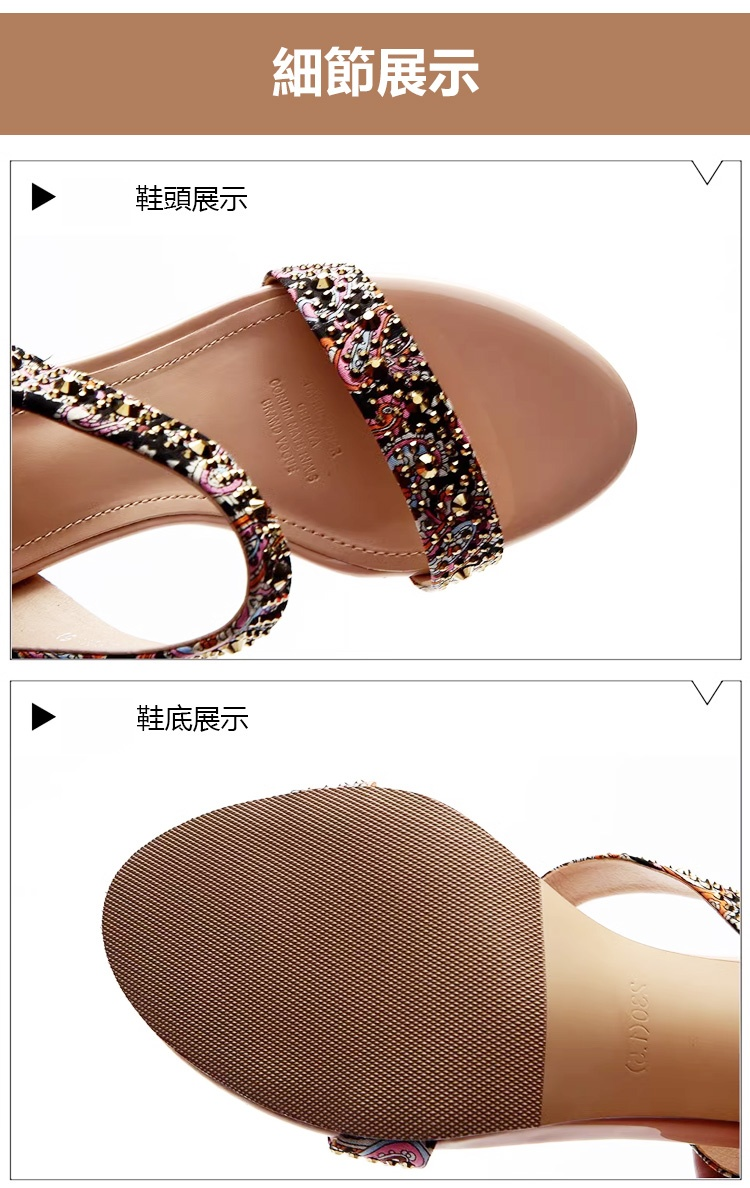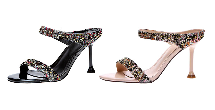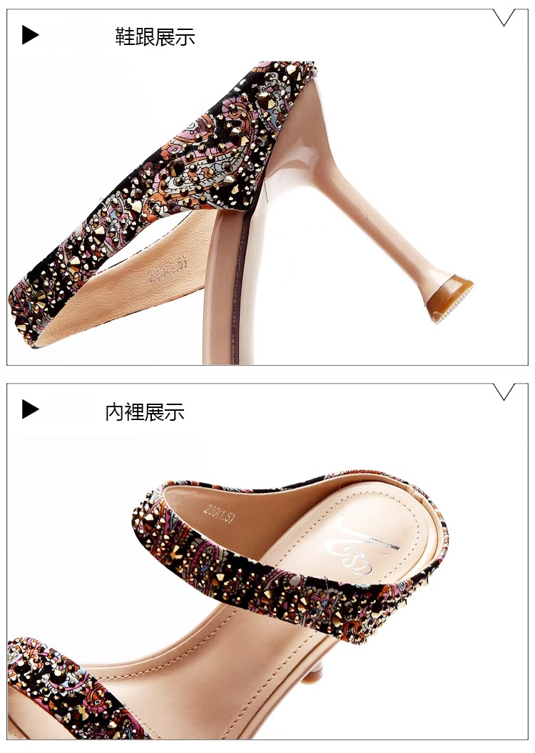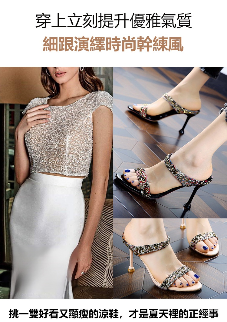 水鑽露趾細跟涼鞋